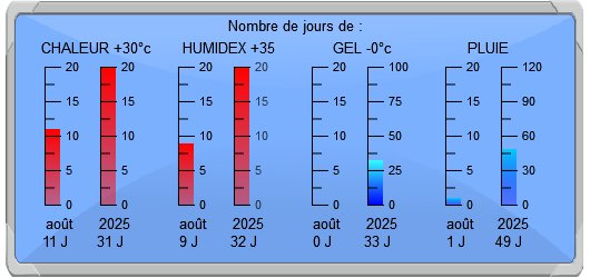 Attention, les données météo publiées sur ce site sont issues d'une station météo personnelle et sont données qu'à titre indicatif, elles ne peuvent en aucun cas être utilisées pour garantir la protection des personnes ou de biens quelconques.